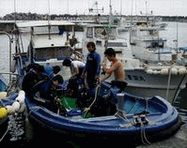 筆ん崎をはじめ粟国島のダイビングポイントの名付けの親であるダイビングショップ美南海のオーナーがスタッフとともに、