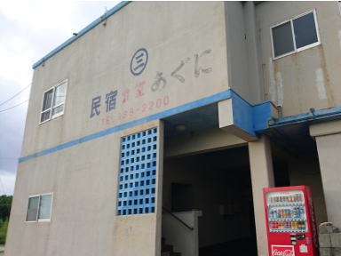 ![]() | 民宿あぐに(まるさん) 粟国村字東991-1番地 ℡:098-988-2200 料金 5,000~6,000円 食事の多さにはびっくりします。 *美南海まで徒歩5分 |