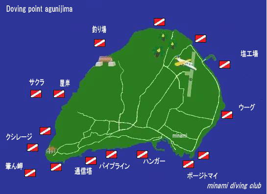 粟国島のダイビングポイント名は島の屋号と美南海の開拓時のスタッフの名前を命名しています。