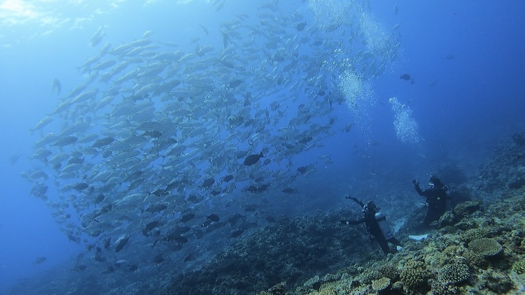 ですが、待っていると別のグループのギンガメアジが物凄い速さで目の前を通り過ぎて大興奮♪
