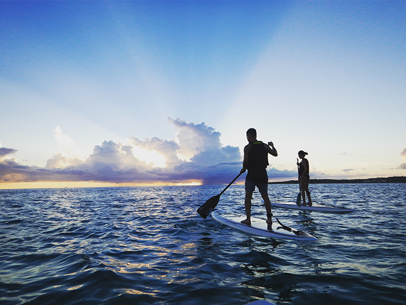 今流行のSUPや沖縄でダイビングに挑戦してみたり、お魚楽園の海でのんびりシュノーケリングしたり、シーカヤックに乗って絶景をクルージングしたりと、様々なマリンスポーツをご用意しております。